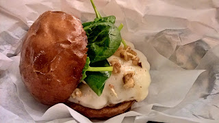 | Hamburguer do Mês - Carne 100% black angus, queijo de cabra, nozes, mel e espinafre |