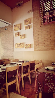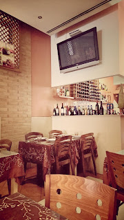 Mas, antes de mais, deixem-me partilhar algo parvo convosco. Não sei porquê mas para mim foi muito estranho ir almoçar a um restaurante indiano. E não é por causa da comida, longe disso. Desconfio que tem mais a ver com o ambiente. A decoração e as cores que normalmente são utilizadas para decorar os restaurantes indianos causam um maior impacto de noite. É como (aqui vai mais uma constatação um bocado parva) entrar num bar de dia ou de noite, está lá tudo na mesma mas simplesmente não é a mesma coisa.