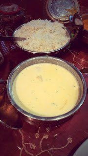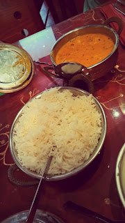 A comida é o mais indiana possível entre o borrego, galinha, camarão, tandoor, biryani e vegetariano as possibilidades são muitas, fazendo com que a leitura da ementa seja algo demorada. Já experimentei chicken curry, chicken korma, himalaya chicken e algo com lamb que entretanto esqueci o nome mas, no fundo, o fundamental é que nenhum desapontou em quantidade ou qualidade. A molhanca estava sempre fantástica tanto que acho que se me dessem uma taça com o molho e umas quantas carcaças já faria uma bela refeição. Para mim, os molhos da comida indiana são uma perdição.